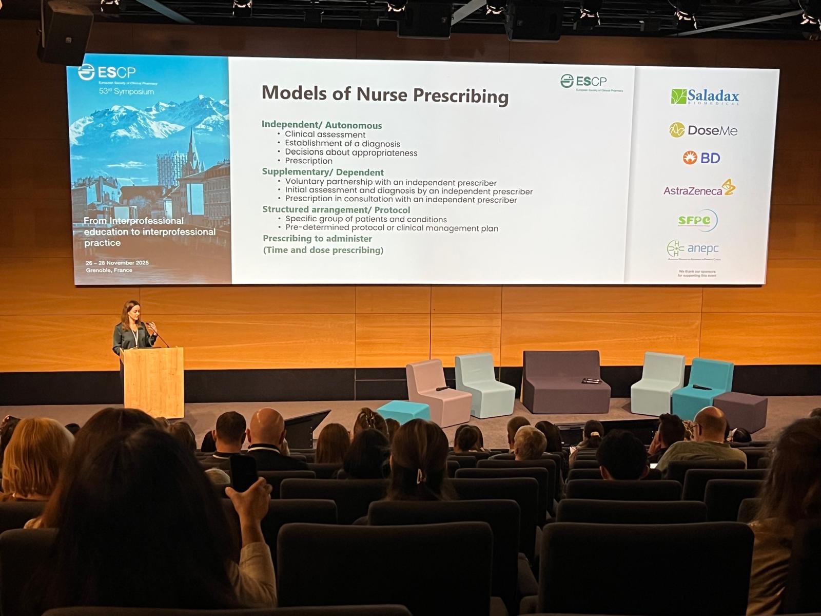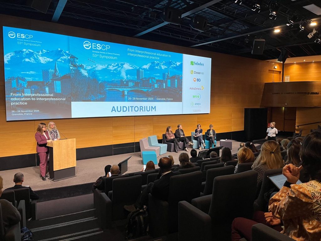 The ESCP 2025 Annual Symposium took place in Grenoble, France, from November 26 to 28, 2025, under the theme “From Interprofessional Education to Interprofessional Practice.” The event brought together over 377 participants from 44 countries across Europe and beyond, fostering the exchange of knowledge, research, and professional networking. The symposium offered a rich programme of plenary lectures, workshops, oral communications, poster presentations, and sponsored lectures, and expert discussions reflecting current challenges in healthcare — from active patient involvement and the implementation of innovations into practice, to the use of digital and AI tools in clinical pharmacy.