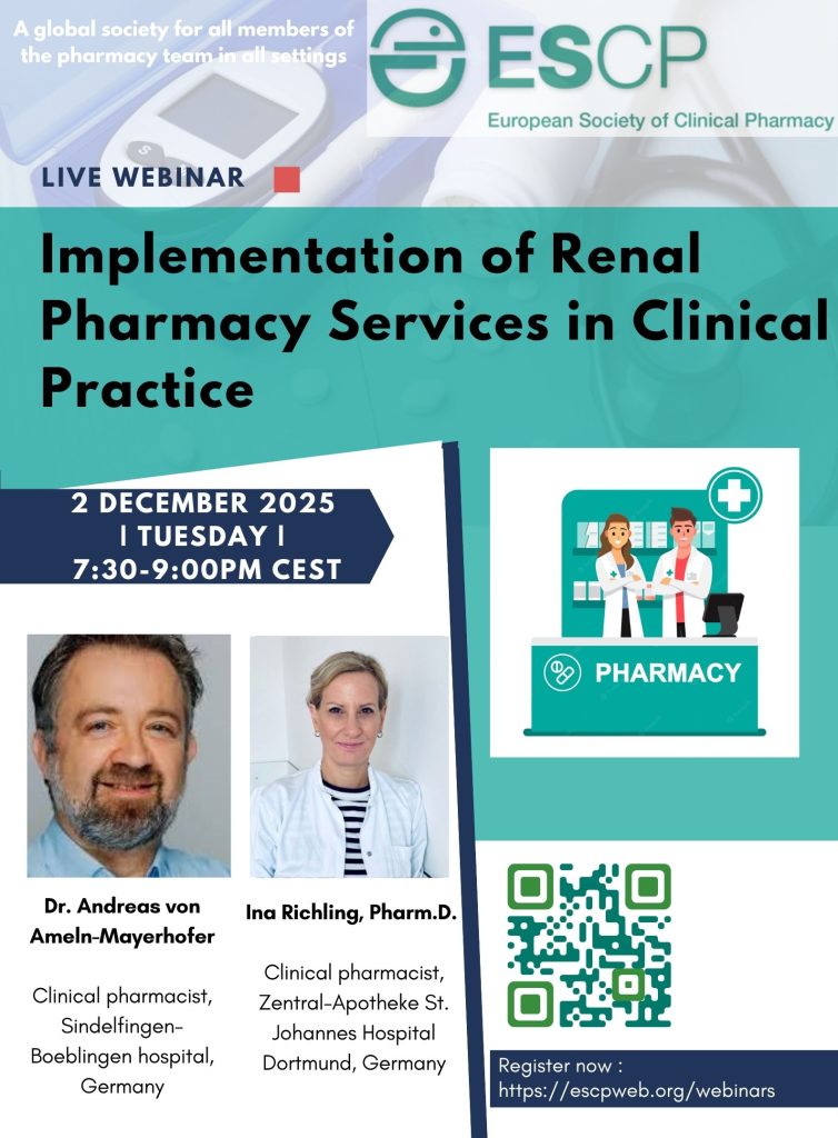 The ESCP Education Committee organizes our program of webinars, which feature key topics in pharmacotherapy and clinical pharmacy. Each year, we reach out to ESCP members to help set the schedule of topics to meet their developmental needs. Within the network of ESCP, we have various experienced experts who love to share their expertise.